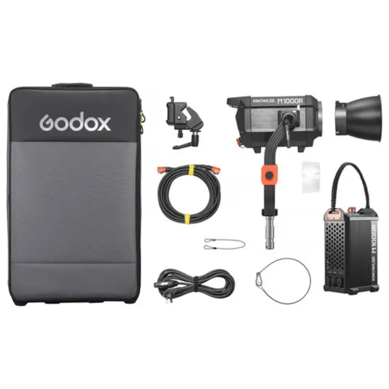 O controle da luz é fácil graças às várias opções de conectividade: use localmente, via DMX, Art-Net ou Bluetooth. Controle o M1000R remotamente a até 60 m (196') ou conecte-o ao app Godox KNOWLED para operação móvel. Com 14 efeitos especiais inclusos, regulagem de 0 a 100% e montagem Bowens compatível com diversos modificadores, a luz oferece versatilidade na criação de setups únicos. O kit M1000R inclui refletor, controlador de energia, cabo de alimentação e suporte em U, proporcionando um setup de iluminação simples. Transporte a luz e os acessórios facilmente usando a bolsa inclusa.