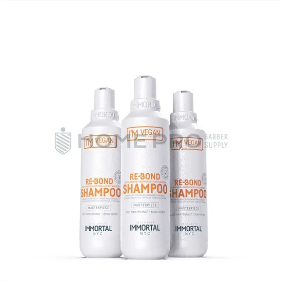O shampoo **Immortal I'm Vegan Re-Bond** é um tratamento reconstrutivo que repara o cabelo seco e danificado. Sua fórmula vegana com queratina vegetal e 11 extratos de plantas fortalece, hidrata e adiciona brilho, deixando seu cabelo suave, maleável e com um aspecto mais volumoso. É perfeito para uso diário e oferece proteção contra o calor e a cor.