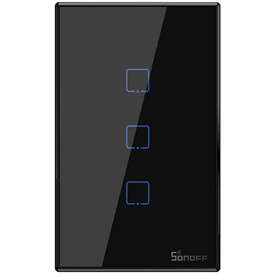 Especificações de Interruptor de Parede Inteligente Smart Sonoff T3US3C Wi-Fi/3 Botões/Bivolt - Preto