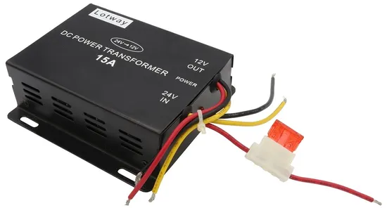 Inversor de Voltagem para Carro Lotway 24V A 12V 15A - Preto