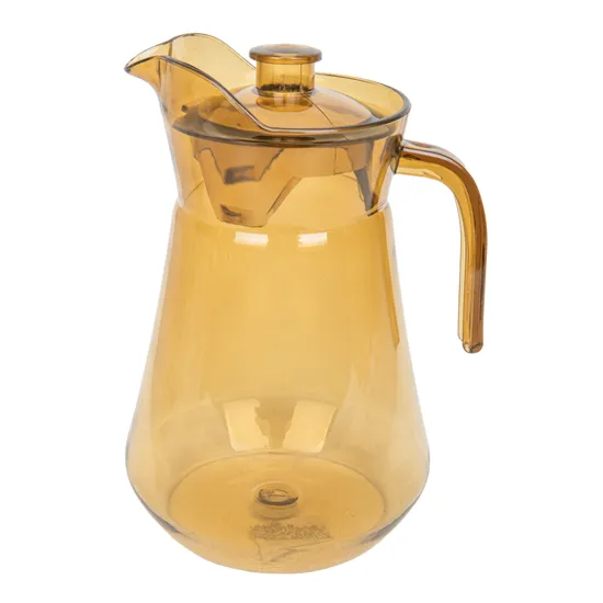 Jarra de acrílico na cor âmbar com tampa e alça ergonômica, ideal para servir água, sucos, chá gelado ou bebidas quentes. Design moderno e elegante que traz um toque decorativo à sua mesa, fabricada em material resistente a impactos e leve para uso diário em casa ou ao ar livre.