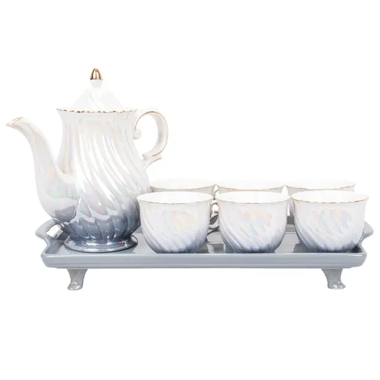 Jogo CHá Porcelana Branca 8Pçs c/Borda Dourada