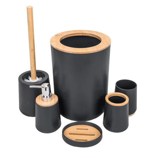 Jogo de Banho Plastico com Bambu 6 Peças - Preto