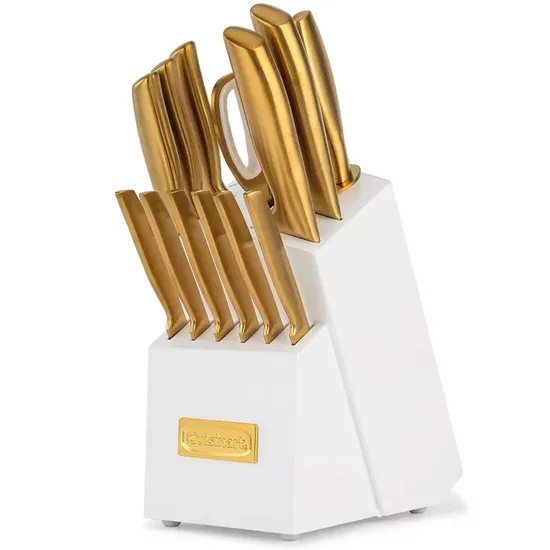 Jogo de Facas com Bloco Cuisinart A2046-15PVD Classic Acabam. PVD Dourado e Branco - 15 Peças
