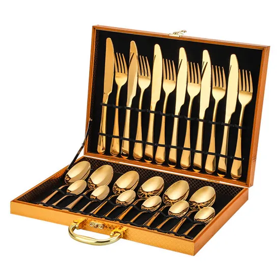 Jogo de Talheres de Aço Inox Colher FD-663 / Faça e Garfo 24 Peças - Dourado