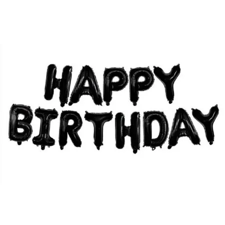 Kit Baloes Frase Happy Birthday Preto