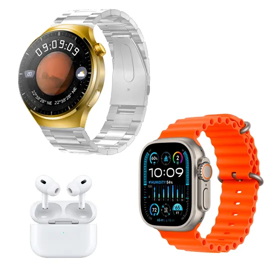 Kit de 2 Smartwatch I80 Suit Extreme - com Fone de Ouvido e Pulseiras Extra - Gold / Silver