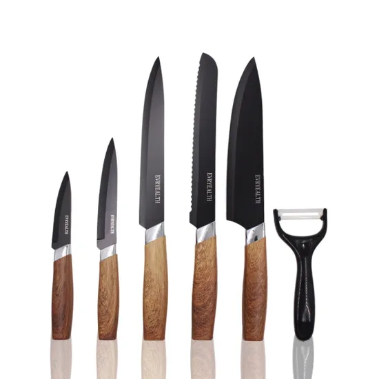 Kit de Facas para Cozinha Evryealth 6 Em 1 com Descascador - Preto/Marrom