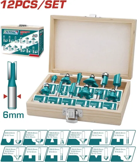 Kit de Ferramentas Router Bits 6MM Total TACSR0121 (12 Pçs)