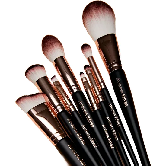 Kit de Pincéis de Maquiagem Ayvanna Rêver Ouro Rosa/Preto