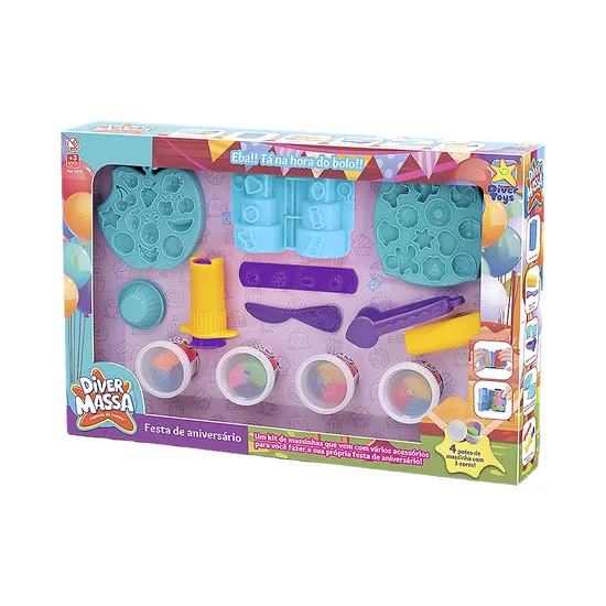 Kit de Plastilina Divertoys Diver Massa Fiesta de Aniversario 8279 14 Piezas
