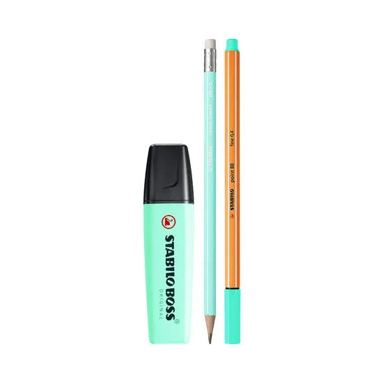 Kit Escolar Stabilo Lápiz + Rotulador + Marcador Turquesa Pastel 8459