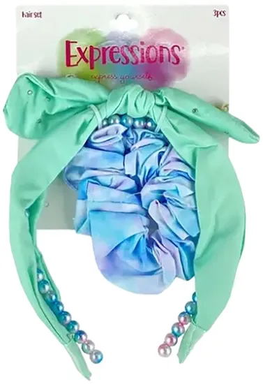 Kit Faixa + Laço para Cabelo Expressions EXV1163 (3 Peças) Verde Agua