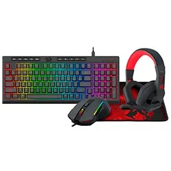 Kit Gamer Redragon Essentials S149 Teclado + Mouse + Mousepad + Fone / RGB / Inglês - Preto