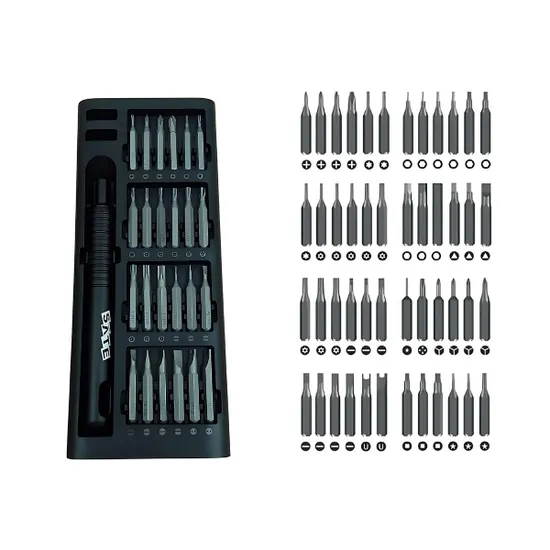 Spanner (U): U2.6, U3.0; Pozidriv (PZ): PZ0, PZ1, PZ2, Cuadradas (SQ): SQ0, SQ1, SIM Ejector: 1 pieza específica para bandejas SIM, Otros: W1.5, Pentalobe, etc. según el kit