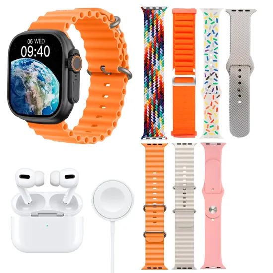 Kit Relogio Smartwatch Use-Ultra 15 com Bluetooth / Fone de Ouvido Sem Fio + 7 Pulseiras - Color Mix