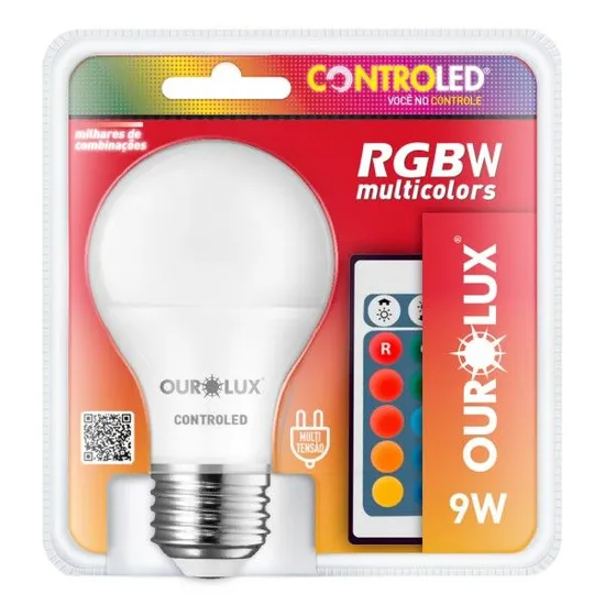 Lâmpada LED Ourolux Inteligente RGB com Controle 9W Bivolt