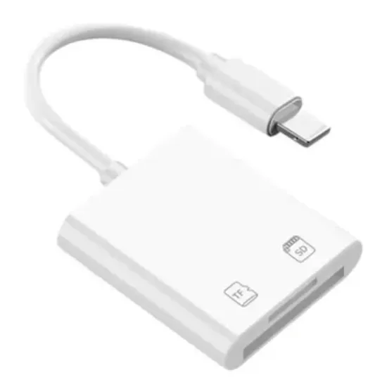 Adaptador Lightning para leitor de cartão SD/TF.