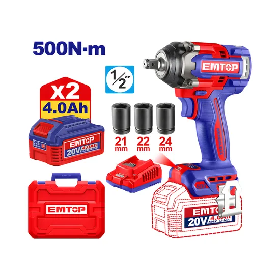 Llave de Impacto Inalambrico Emtop ECIWL2050 1/2" 20V 500NM 220V