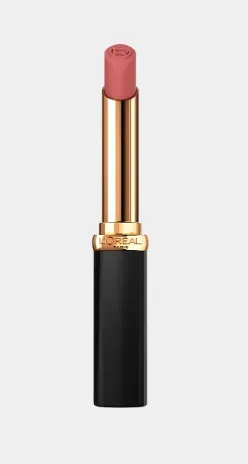 Disfruta de hasta 16 horas de uso y efecto ultra voluminizador, manteniendo tus labios intensamente pigmentados con color intenso nude mate durante todo el día. Nuestra fórmula L'Oréal Color Riche Matte dejará los labios con una sensación hidratante y un aspecto voluminoso para lograr un acabado perfecto. Tiene un verdadero acabado matte, ofreciendo los beneficios de un bálsamo labial humectante gracias a sus ingredientes ácido hialurónico y aceite de argán.