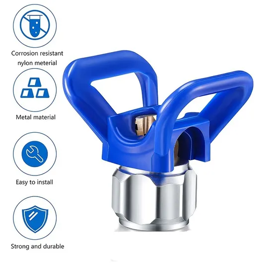 a proteção atua como um dispositivo de segurança para evitar que uma pessoa entre em contato com a ponta ao pulverizar e também mantém a ponta do pulverizador de tinta no lugar.