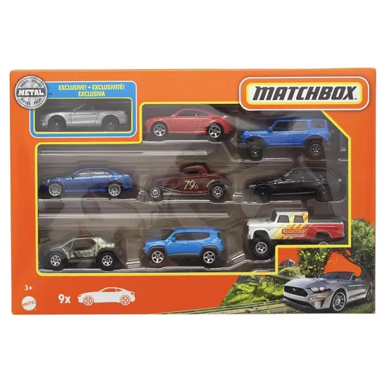 Inclui: 9 carros de brinquedo (1 exclusivo da Matchbox)