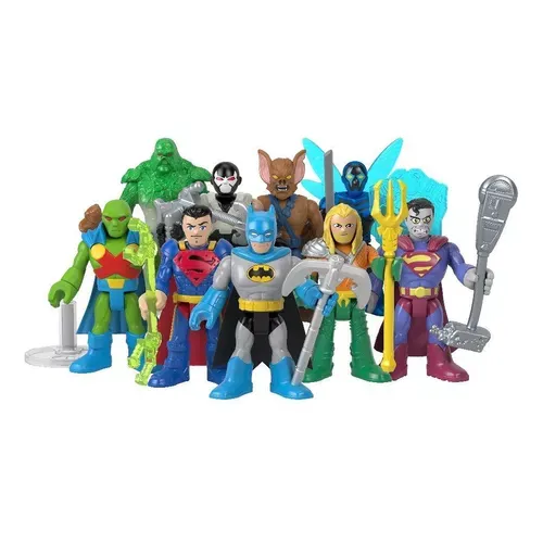 Los niños en edad preescolar pueden crear emocionantes aventuras de superhéroes contra supervillanos con estas figuras de personajes misteriosos Imaginext, que forman parte de la colección de Fisher-Price. Cada bolsa sellada incluye una figura sorpresa de alguno de los personajes de DC Super Friends, como Batman, Blue Beetle, Aquaman, Martian Manhunter, Man-Bat, Bane, Super Boy Prime, Bizarro y una figura que brilla en la oscuridad de Swamp Thing. ¡Los niños pueden coleccionarlos todos! Cada uno se vende por separado y está sujeto a disponibilidad.
