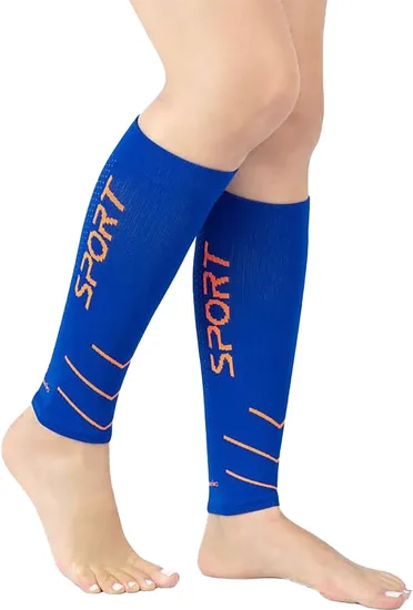 Meia de Compressão para Panturrilha Medivaric Sport - Azul/Laranja Neon (L)