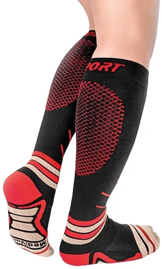 Meias de Compressão com Fio de Cobre Medivaric Sport - Preto/Vermelho (L)