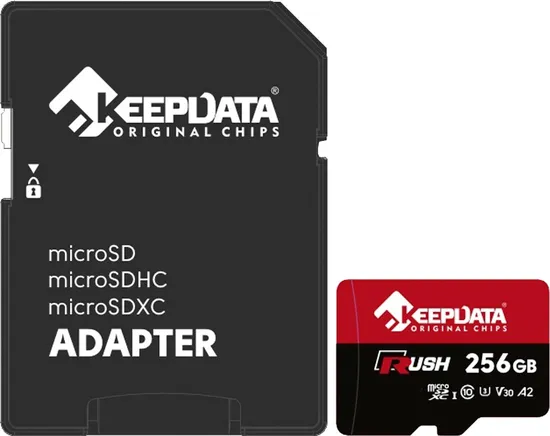 Especificações de Cartão de Memória Micro SD Keepdata 256GB Rush KDMSDC10U3V30A2/256G - 160/120MB/s
