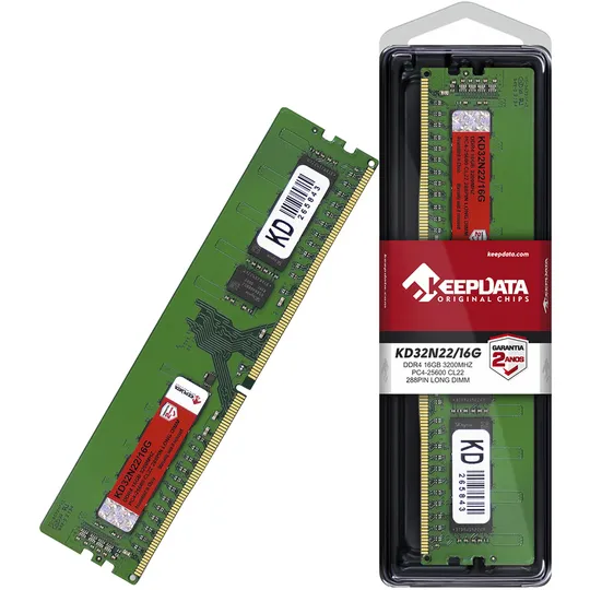 Especificações de Memória Ram para PC Keepdata KD32N22/16G de 16GB DDR4/3200MHZ - Verde
