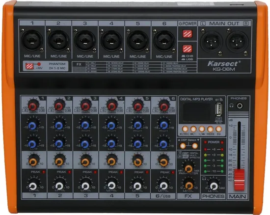 Mesa de Som Mixer Karsect de 6 Canais - KG-06M