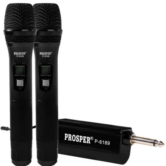 Microfone Prosper P-6188 com Fio 2 Em 1 / Unidirecional / Uhf - Preto