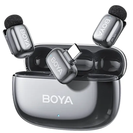 Microfone Sem Fio para Smartphone Boya Mini 2-02 com USB-C - Prata