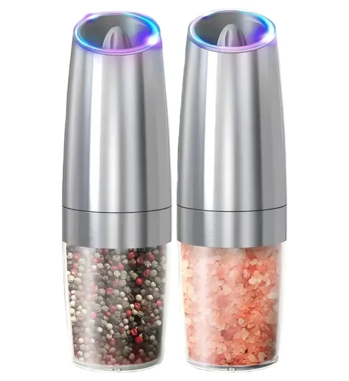 Luz LED brilhante: Nosso conjunto de saleiros e pimenteiros elétricos possui uma luz LED azul brilhante que acende automaticamente durante o uso. A luz LED facilita a visualização da quantidade de tempero que você está adicionando, mesmo em condições de pouca luz.
