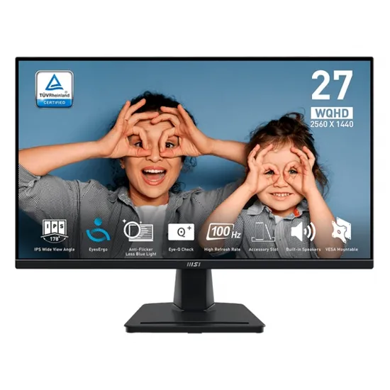 Monitor MSI Pro MP275Q 27" 2K WQHD (2560 X 1440), 1MS, 100HZ, Ips, 2XHDMI 2.0, 1XDISPLAYPORT 1.2, 1XCONECTOR de Audio, Speaker 2WX2, Preto