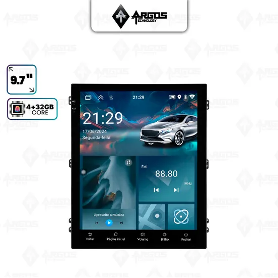 Central Multimídia ANDROID ARGOS 9 .7 POLEGADAS PADRAO TESLA SEM BOTOES Modelo:OCTACORE 4+32 GB ANDROID 15Especificações:• Tela QLED ALL IN resolução 1280x720dpi• Tela capacitiva 9.7 polegadas de vidro duplo super sensível ao toque e ultra resistente• Sistema Operacional Android 15 NOVA VERSAO 2025• Memória RAM 4GB DDR4• Armazenamento Interno 32GB Memória Flash• Processador Octa Core 2.0 GHz• Bluetooth versão 5.0 com transmissão de 50 Mbps• Conexão Dual Wi-Fi 2.4GHz e 5.0GHz com antena integrada• CI de Rádio 7708 Frequência FM 76-108 MHz / Frequência AM 520-1710 MHz• DSP: 7604• Saída de áudio amplificada– 4x48watts• Carplay e Android Auto (sem fio, via bluetooth)Aplicativos já instalados na Multimídia:• YouTube• Google Maps• Google Chrome• Play Store (para baixar os app que desejar)Funções:• Todos os Logotipos de Montadoras à sua escolha• Câmeras: Compatível com: 360p, 480p, 720p, 1080pCâmera de Ré: Ativação automática da imagem ao engatar a ré, mantendo a imagem traseira enquanto a marcha ré estiver sendo utilizada.Câmera Frontal : Ativação automática da imagem ao desengatar a ré, mantendo a imagem frontal por 10 segundos. Ela é instalada pela entrada AV AUX da multimídia.• APP CARPLAY & ANDROID AUTO: Aplicativos CarPlay (iOS) e Android Auto (Android)O Apple CarPlay é o sistema operacional automotivo da Apple que faz a integração do iPhone com a central multimídia do veículo (sem fio)O Android Auto é um software desenvolvido pela Google especialmente para a integração do seu Android com a sua central multimídia (sem fio)• GPS: Sistema de navegação via satélite com controle touch screen.• Rádio FM com busca automática, memorização de até 18 estações FM.• Bluetooth: Permite realizar e receber ligações. Possui agenda telefônica com pesquisa de nomes, histórico de chamadas, funções auto-conectar.• Bluetooth Hands-Free / Música ASDPPermite que o motorista receba ligações dentro do carro, através do viva voz. Além disso, é possível também ouvir músicas do celular e também utilizar aplicativos que são compatíveis com a central multimídia.• Ajuste de Iluminação: Controle do nível de intensidade da iluminação diurno ou noturno com opção de acionamento automático via farol ou por hora.• Balance/Fade: Permite ao usuário distribuir a sonorização no interior do veículo.• Equalização Bass/Middle/Treble e faixas de equalização predefinidas com Classic jazz, pop, Speech e Rock.• WI-FI: Com antena ExternaConexão Dual Wi-Fi 2.4GHz e 5.0GHz com antena integrada.• MÍDIA:Reproduz arquivos de áudio - MP2, MP3, MP4, ACC, WMA, WAVReproduz arquivos de vídeo - WMV, MPEG, MJPEG, AVI, MP4, MKV, MPG, RMVB• AUX/AV:1 Entradas de vídeo 1 Saída de vídeo – 4 Saídas de áudio2 Entradas de áudio RCA1 Saída 12VDC• Ventoinha integrada para auxiliar a circulação do ar dentro da Multimídia.Conteúdo:• Central Multimídia 9.7 polegadas• Cabo da Câmera de ré• Chicote de Alimentação Universal 16 vias• Cabo RCA AV AUX Saída de áudio e vídeo• Antena de GPS• Cabo USB (4 pinos)• Cabo USB (6 pinos)• Chicote de comando de volante resistivo (SWC)
