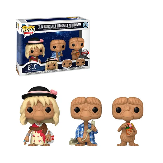 Muñeco Funko Pop Movies e.T In Disguise, In Robe, With Flowers 3 Pack
