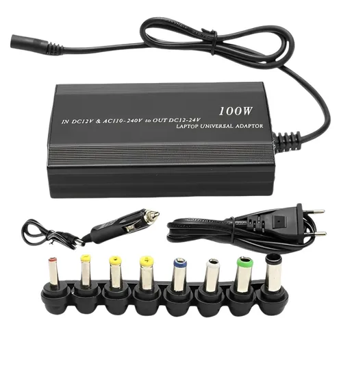 Fonte de Alimentação Universal Microfins HR1009 100W para Notebooks Bivolt, possui design compacto com 100W de potência, mantenha seu Notebook carregado com esta fonte de alimentação versátil e de alta qualidade. Possui 9 conectores compatíveis com a maioria das marcas de notebooks, além de contar com corpo metálico para melhor dissipação de calor e maior durabilidade. Inclui porta USB de 5 V para carregar celulares. Ajustável de 12 a 24 volts com 100 W de potência. Ele também pode ser usado no carro para carregar seu laptop e nunca ficar sem bateria.