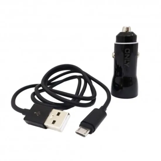Only Carregador para Auto 2USB com Cabo V8 Negro