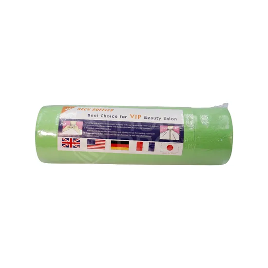 Papel de pescoço higiênico na cor verde, macio e absorvente. Proporciona barreira de proteção entre a pele e a capa, garantindo higiene total.