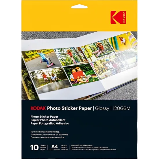 Papel Fotográfico A4 Glossy Kodak Adesivo para Impressora Jato de Tinta - 10 Folhas