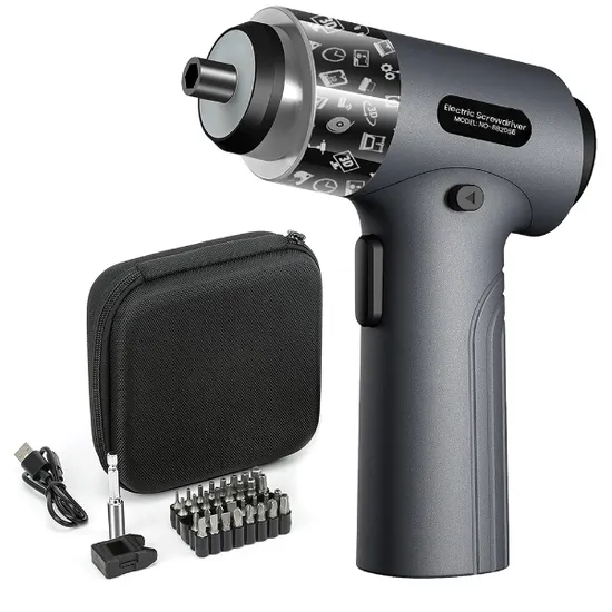 Parafusadeira Eletrica / Kit de Ferramenta Eletrica NO-882055 com 36 Peças / 200RPM / Recarregavel - Cinza