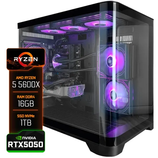 PC Gamer Montado, Ryzen 5 5600X 4.60GHZ, RTX5050 Zotac Twin Edge 8GB, 16GB Ram DDR4, SSD 1TB Nvme, Placa Mãe AM4 A520M, Fonte 600W, Water Cooler 120MM
