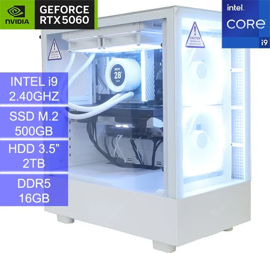 PC Gamer NZXT H5 Elite Intel i9/ 16GB/ W11/ 2TB HDD/ 500GB SSD M.2/ Geforce RTX5060 8GB - White