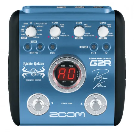 O G2R da Zoom eacute um pedal de efeitos digitais para guitarras. Possui 40 presets originais que foram desenhados pelo renomado guitarrista Richie Kotzen que tocou guitarra nas bandas Poison e Mr. Big. Haacute tambeacutem 40 predefiniccedilotildees definiacuteveis pelo usuaacuterio vazias para que vocecirc possa salvar e recuperar seus proacuteprios tons personalizados.br