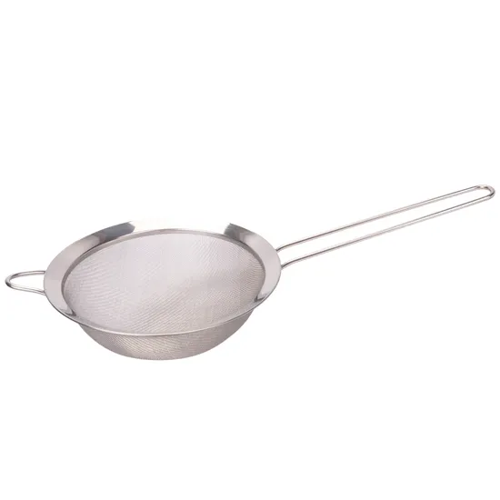 RESISTENTE, DURÁVEL E BONITA, A PENEIRA É PRODUZIDA INTEIRAMENTE EM AÇO INOX, ALÉM DE POSSUIR SUPORTE PARA APOIO.