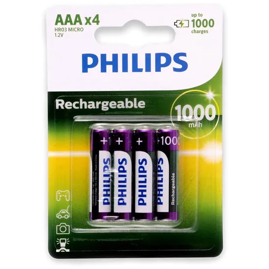 Pilha Philips R03B4RTU10/97 - AAA - 1000MAH - 4 Unidades - Recarregável