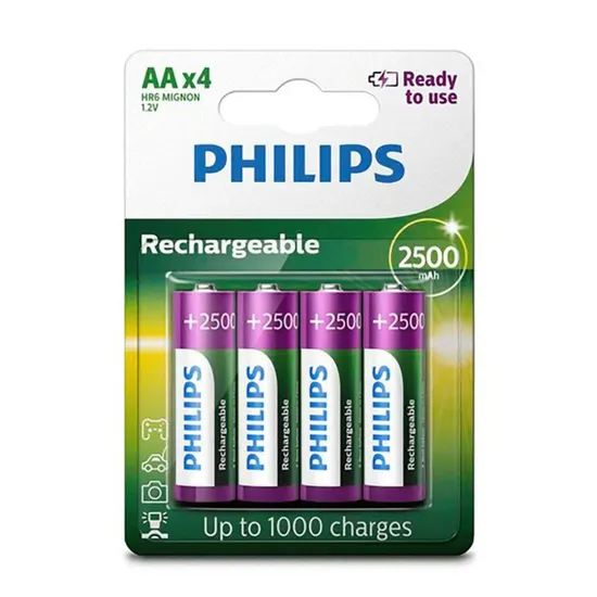 Pilha Recarregável Philips AA 2500 Mah - Pacote com 4 (R6B4RTU25/97)