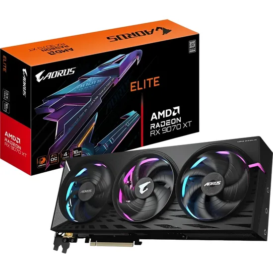 Placa de Vídeo Gigabyte Aorus Radeon RX 9070 XT Elite 16 GB GDDR6 (GV-R9070XTAORUS e-16GD)